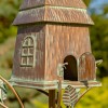 This birdhouse is crafted from 100% powder-coated iron, making it weather- and rust-resistant for long-lasting outdoor use. It features a sturdy stake design with a distressed, hand-painted antique copper finish that adds charm to any garden. The birdhouse includes one entry hole and perch, along with built-in drainage, ventilation, and cleanout access for easy maintenance. Measuring 10" L x 7.5" W x 70.25" H with a 58" stake, it offers a secure and elevated nesting space, while requiring minimal assembly with no tools needed.