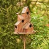 This four-home bungalow birdhouse stake brings charming architecture and multi-room design to your garden, ideal for attracting a variety of bird species. Crafted from powder-coated iron with a distressed antique copper finish, it is both weather- and rust-resistant for lasting outdoor use. The sturdy multi-prong stake ensures stability, while four entry holes with perches, along with built-in drainage and ventilation, provide a comfortable habitat. Standing 73.75" tall, this decorative yet functional piece offers easy, tool-free assembly and eye-catching garden appeal.
