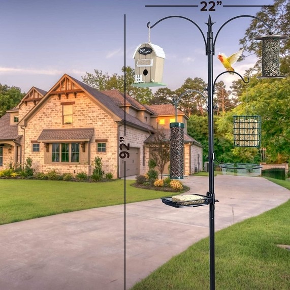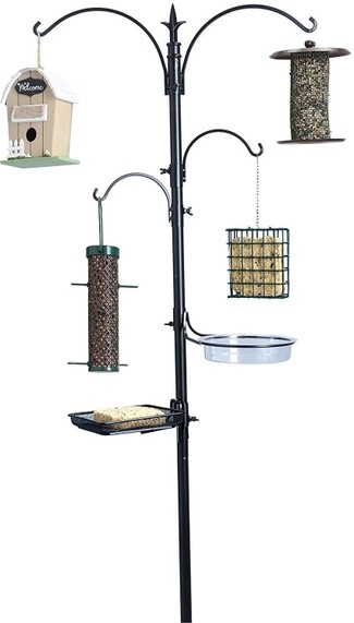 - VERSATILE: The AshmanOnline bird feeder kit includes a full complement of accessories. Inside every box, you'll find our prongs stabilization system that anchors securely in your lawn or garden, two top hooks, an additional feeder hook, one birdbath that doubles as a water dish, and one feed tray. Arrange in any combination.